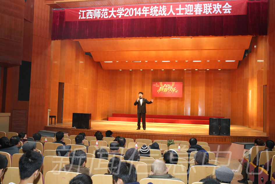 金蛇狂舞辞旧岁,龙马欢腾迎新年。1月10日下午,2014 年统战人士迎春联欢会在我校青山湖校区演奏厅举行。江西省政协副主席、九三学社江西省委会主委李华栋,省委统战部副部长蔡清平,我校党委书记田延光,校长梅国平,校党委副书记何小平,全校统一战线代表共计300余人参加了联欢会。