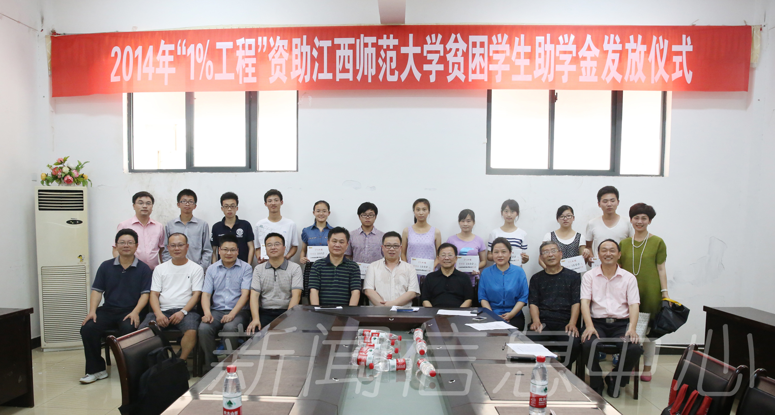 6月16日下午,2014“1%工程”资助我校学子助学金发放仪式在瑶湖校区大学生活动中心举行。民进江西省委会副主委欧阳剑雄,江西西林科股份有限公司董事长、江西科技师范大学原校长邹道文,我校纪委书记周晓朗、党委统战部、团委、民进省委组织部相关人员,民进江西师范大学委员会部分会员及受资助学生出席了活动。党委统战部负责人主持发放仪式。