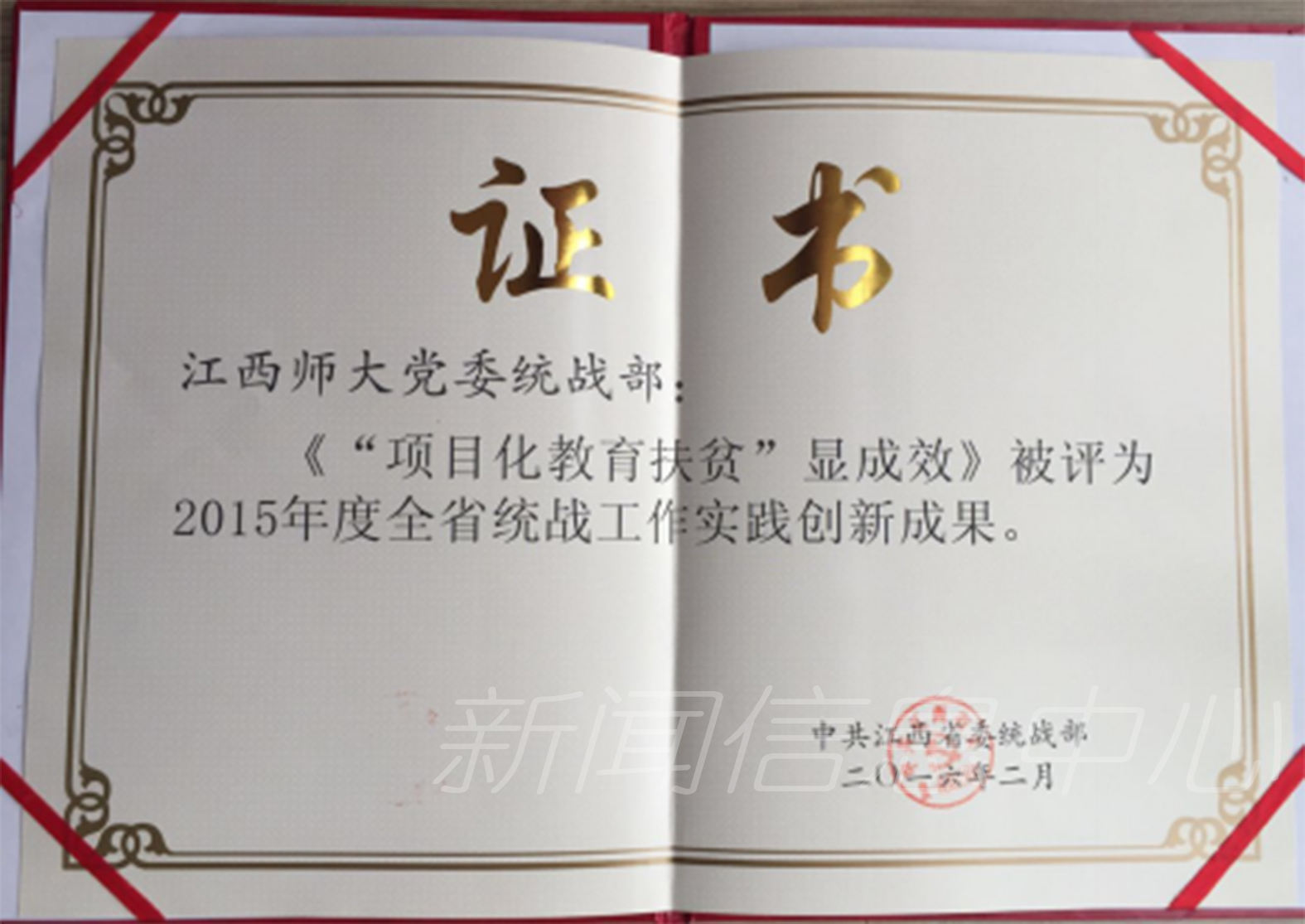 在刚刚结束的全省统战部长会议上,我校统战工作喜获表彰。党委统战部荣获“2015度全省统战宣传信息工作先进单位”,《“项目化教育扶贫”显成效》被评为2015度全省统战工作实践创新成果。