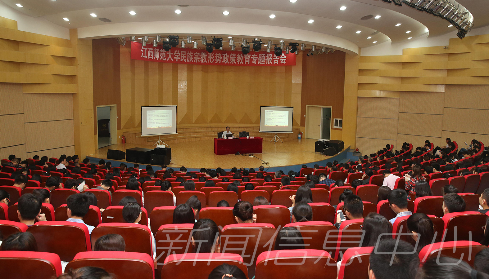 5月20日上午,省委统战部副部长,省民族宗教事务局党组书记、局长张勇应邀来校,在音乐艺术广场音乐厅作民族宗教形势政策教育专题报告。校党委书记田延光、党委副书记聂剑、校长助理丁晖参加报告会,各学院党委(党总支)书记、党委副书记、辅导员和部分学院师生代表等400余人聆听了报告。报告会由聂剑主持。