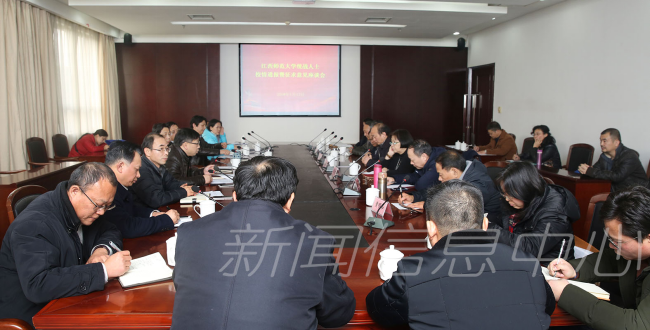 1月17日下午,学校在知行楼第二会议室召开统战人士座谈会,通报2017年度工作,并就校领导班子民主生活会征求意见,校党委书记田延光,校长梅国平,校党委副书记刘光华,副校长项国雄,校党委委员、统战部部长侯朝蓉,校党委委员、组织部部长黄保文出席,有关部门负责人参加会议。