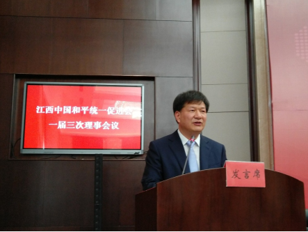 省委统战部常务副部长、江西统促会副会长张勇作理事会工作报告,省委统战部副部长高鹰群作有关人事事项说明。江西统促会副会长曾鲁台主持会议,副会长谢林翰宣读了中国和平统一促进会的贺信,理事代表胡葆琳、王中平发言。来自港澳台、海外和境内的150余名理事参加了会议。